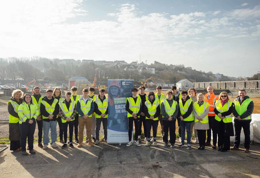The learners, who are enrolled on Pembrokeshire College’s innovative, industry-led Destination Renewables programme, were taken on a tour of the ongoing building works which are well underway to create a clean energy development platform including 17,000 sqm of laydown space, a supersize slipway and new workboat pontoons. The development is part of the £60m Pembroke Dock Marine project - a partnership between the Port of Milford Haven, Offshore Renewable Energy Catapult, Marine Energy Wales and Celtic Sea Power which is funded by the UK Government and Welsh Government through the Swansea Bay City Deal.